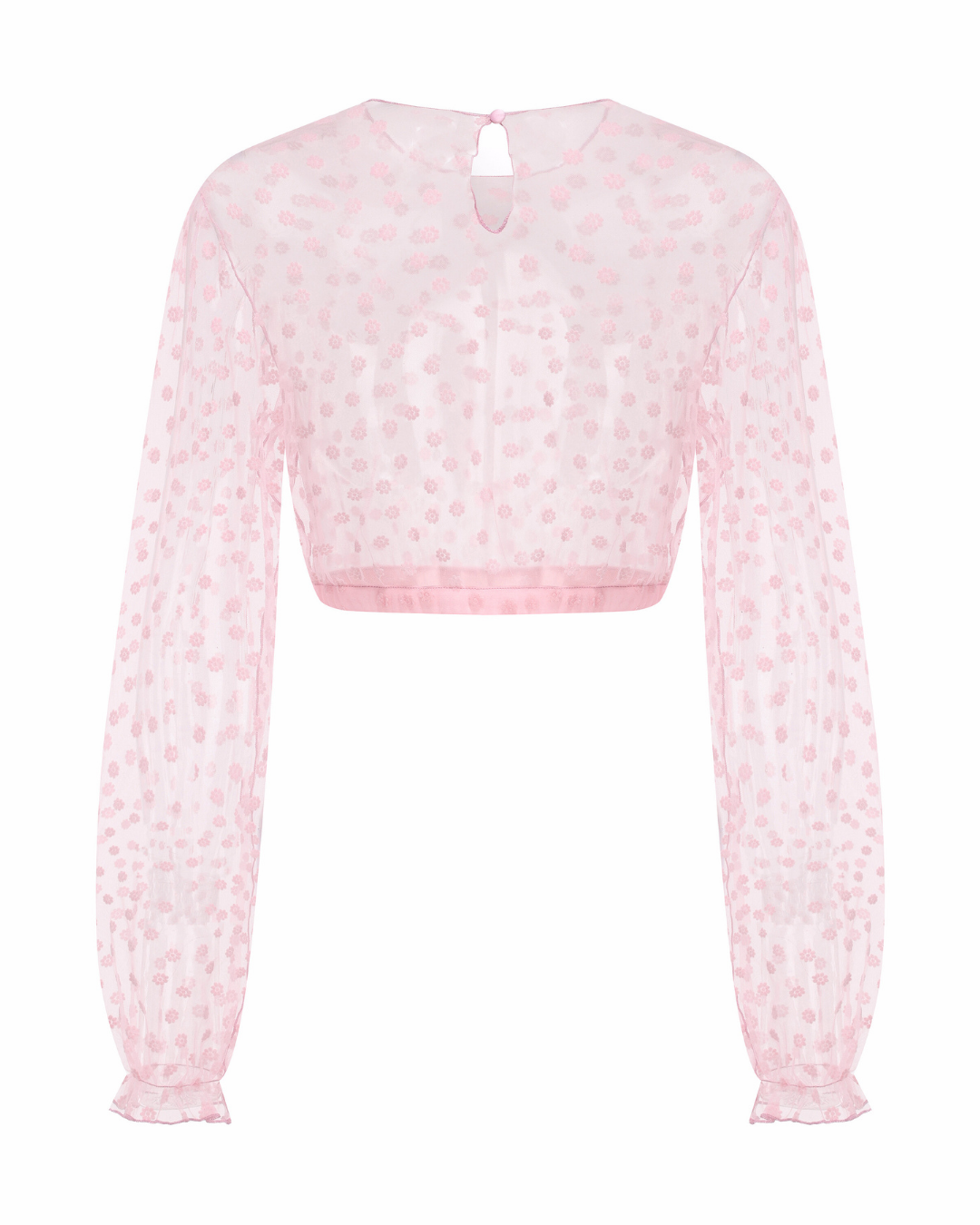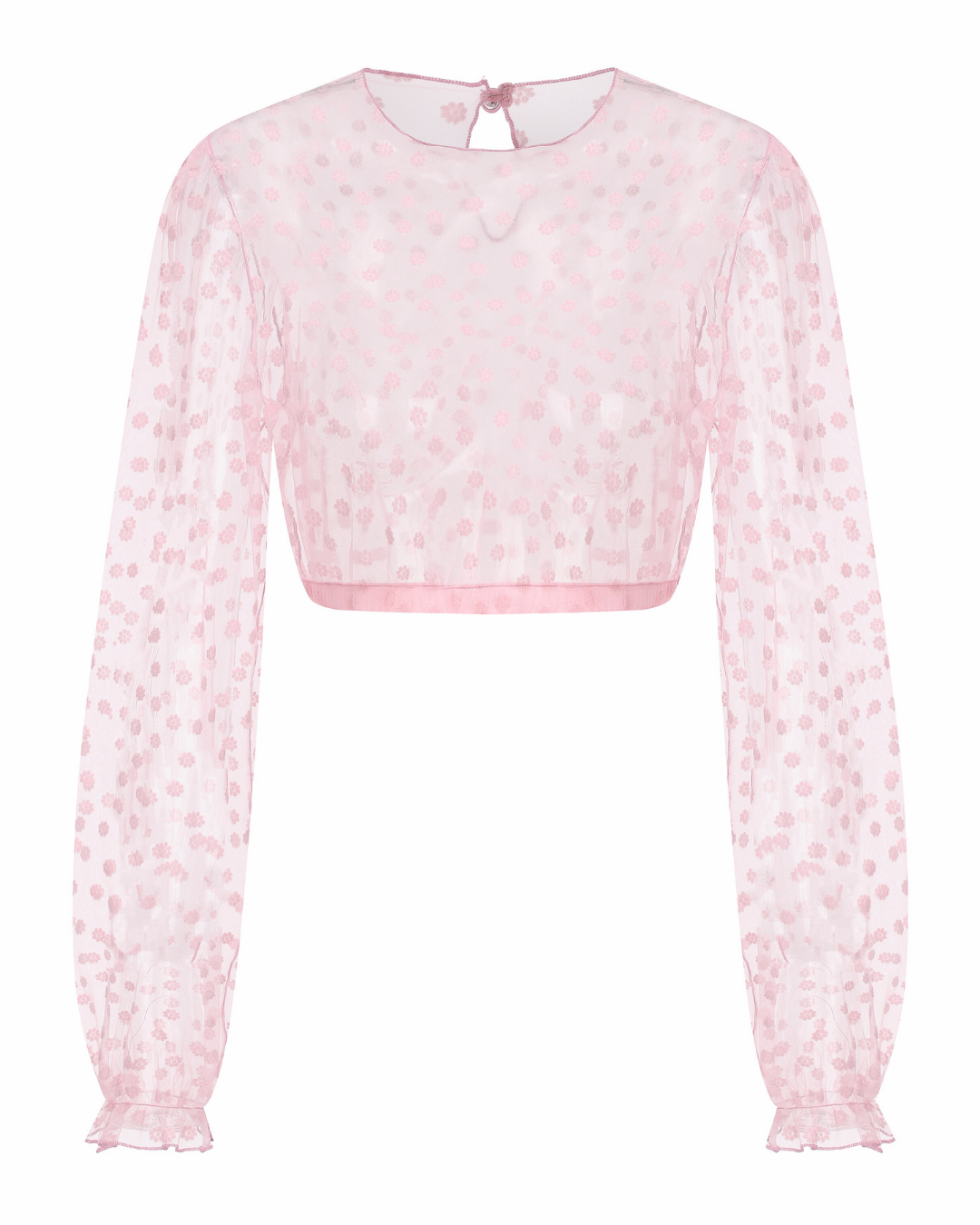 Leicht, feminin und voller Charme: Unsere Bluse Alma in zartem Rosa ist aus feinem, transparentem Nylon gefertigt – kaum spürbar, angenehm luftig. Das Besondere: kleine, beflockte Blümchen in Rosa schmücken den Stoff und verleihen der Bluse eine verspielte Leichtigkeit.