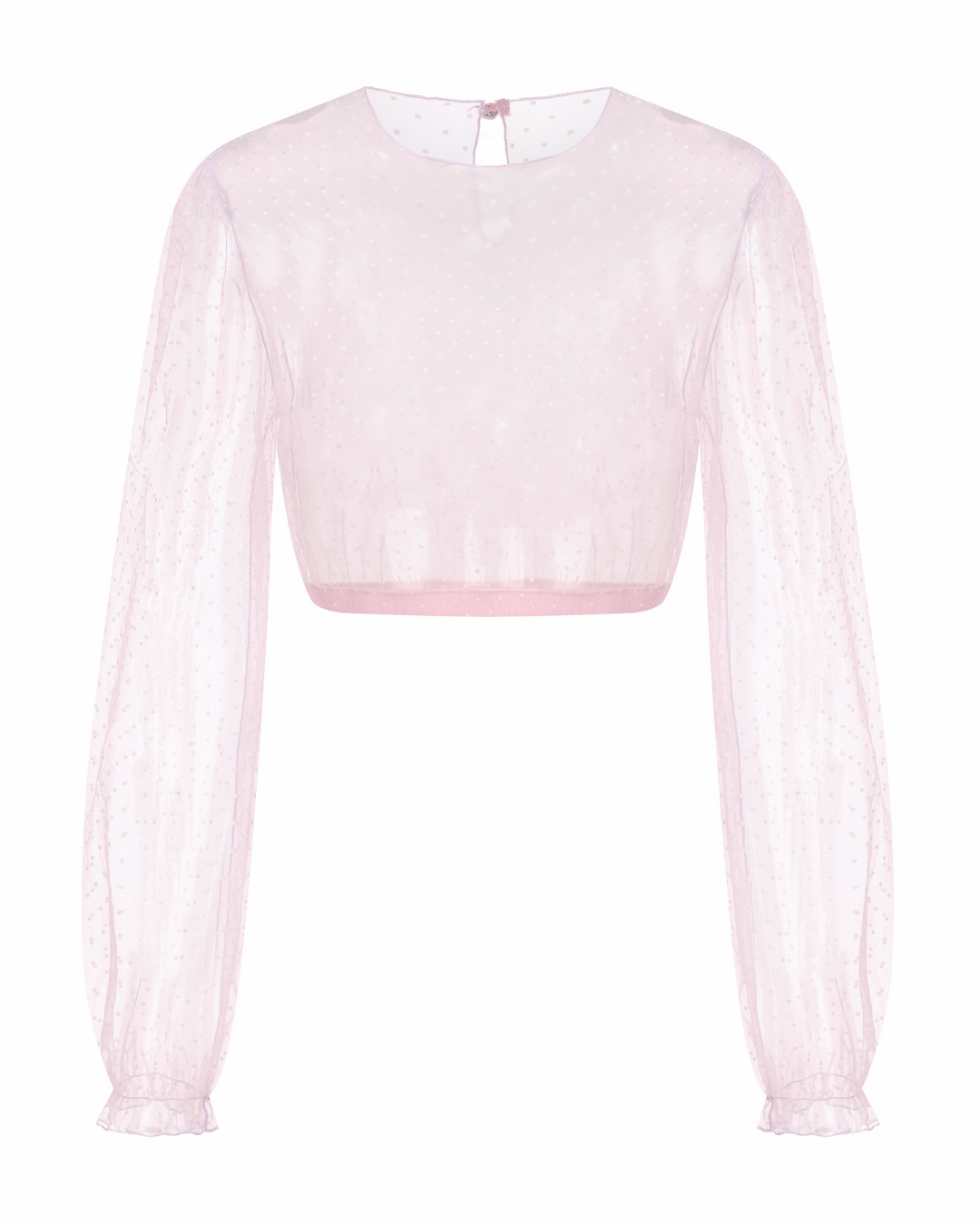 Zart, luftig und ein bisschen verspielt: Unsere Bluse Leni aus feinem Nylon legt sich federleicht an die Haut. Der sanfte Rosaton wirkt weich und feminin – das Highlight: kleine, geflockte Pünktchen in weiß, die der transparenten Bluse eine charmante Struktur verleihen.
