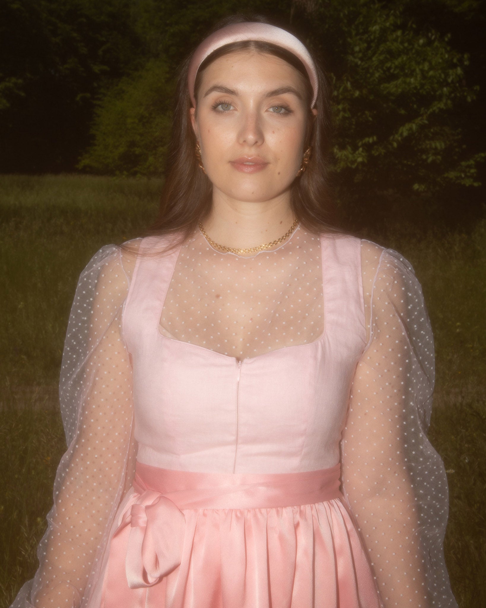 Besonders im Trend: midilange Röcke – wie schon seit Längerem. Um das tiefste Dekolleté geht's zum Glück auch schon lange nicht mehr: hochgeschlossene Blusen mit langen Ärmeln werdet Ihr 2025 oft auf dem Oktoberfest sehen. I promise! Damit's trotzdem cheeky bleibt, setzen wir dieses Jahr bei unseren Dirndlblusen auf transparente, see-through Materialien.
